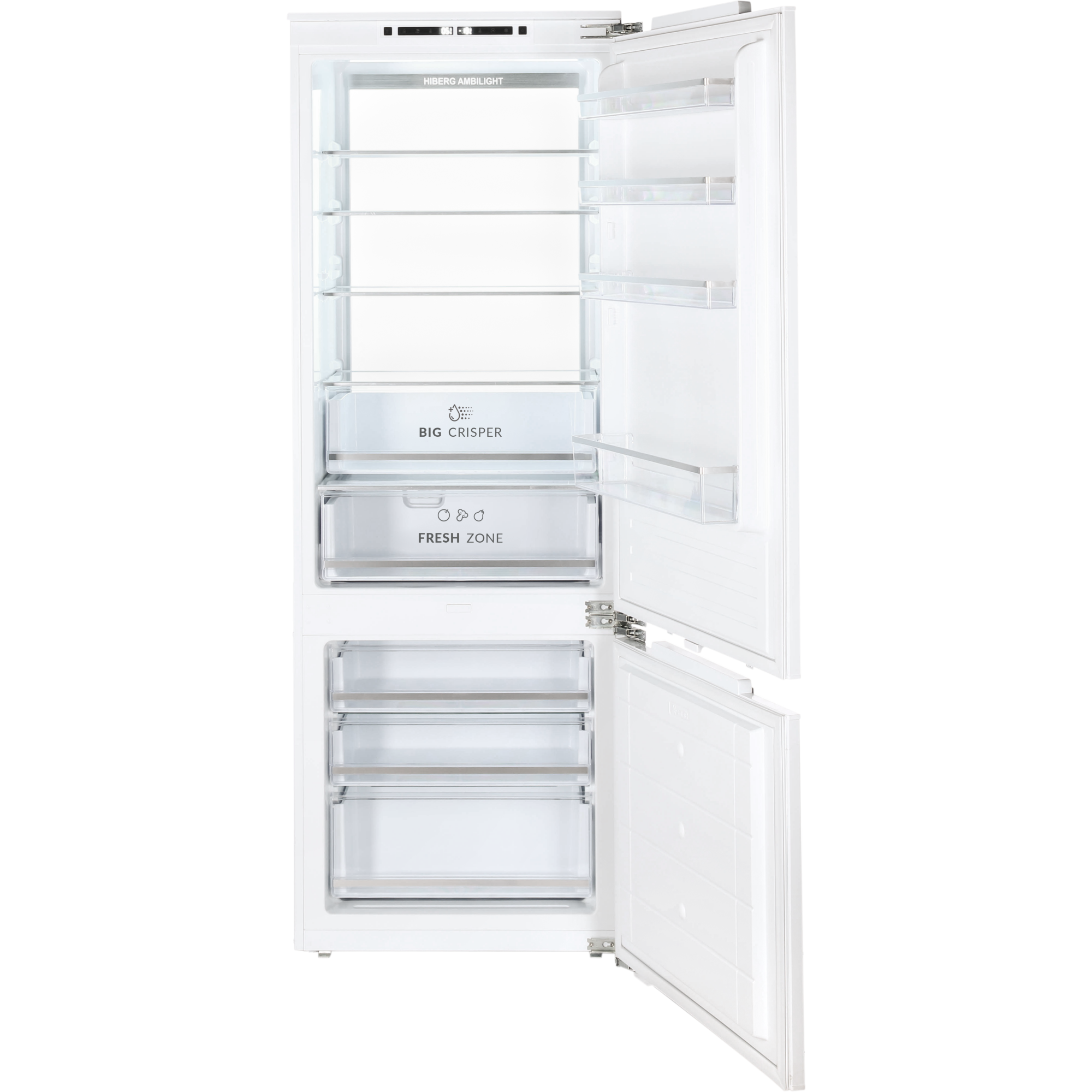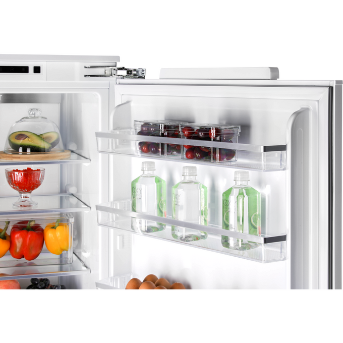 Встраиваемый холодильник HIBERG i-RFCB-500F NFW с инверторным компрессором, автоматической системой охлаждения Total No Frost, зоной свежести и электронным управлением — идеальный выбор для встраивания в кухонный гарнитур, создания комфортного и стильного пространства. Двери холодильника можно перевесить на другую сторону. Это позволит открывать их в удобном направлении и установить холодильник в наиболее удобном месте.