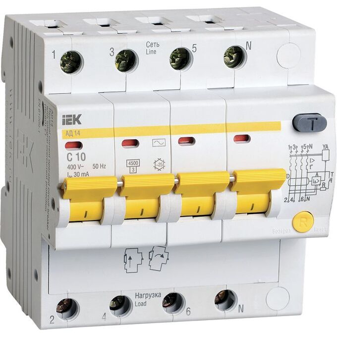 Выключатель автом. дифф. тока IEK АД14 MAD10-4-010-C-030 10A тип C 4.5kA 30мА AC 4П 400В 5мод белый
