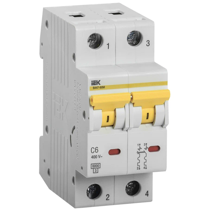 Выключатель автоматический IEK ВА47-60M (MVA31-2-006-C) 2Р 6А 6кА С