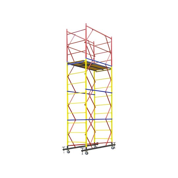 Вышка оборудована колесами и легко перемещается даже одним человеком;