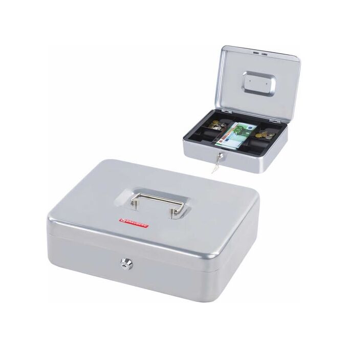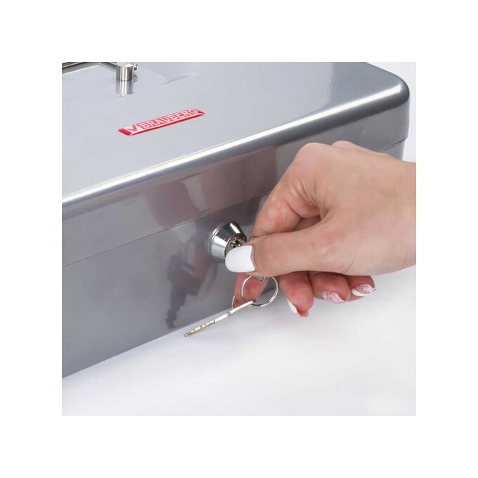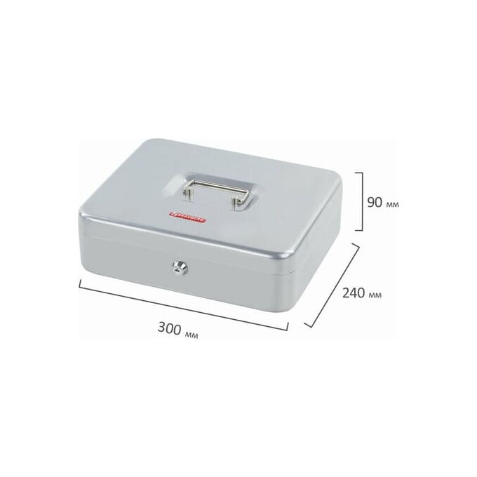 Ящик для денег BRAUBERG 291060 90х240х300мм, ключевой замок, серебристый
