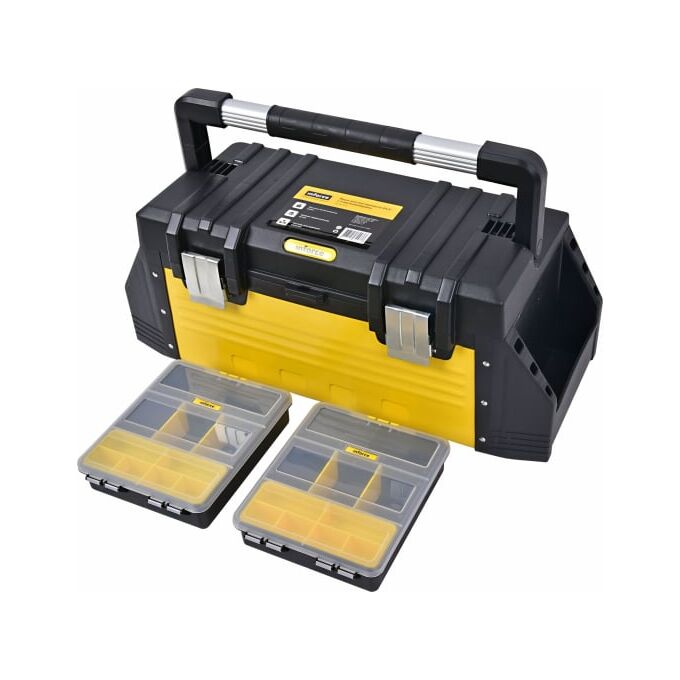 Ящик для инструмента 24,5 с 2 органайзерами Inforce 06-20-04 обладает большими размерами, которые позволяют разместить внутри несколько столярных или слесарных инструментов.