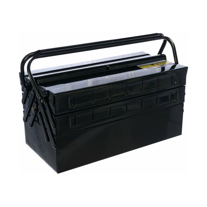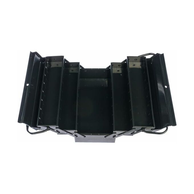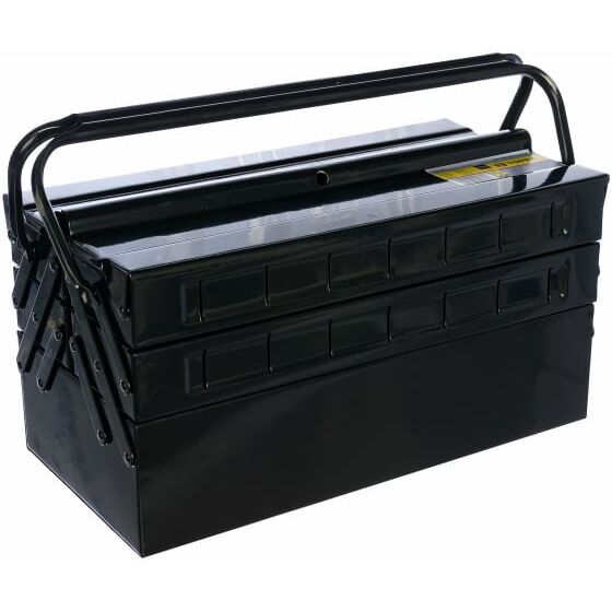 Металлический ящик TOPEX 43x20x21см 79R100 предназначен для хранения и переноски ручного инструмента и расходных материалов. Прочная листовая сталь, из которой он изготовлен, обуславливает длительный срок эксплуатации и надежную защиту инструмента. Для удобной организации всего необходимого в работе предусмотрено пять секций.