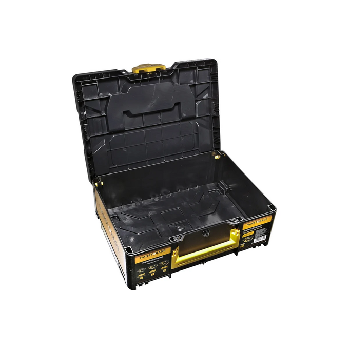 Ящик предназначен для хранения и транспортировки инструмента и инвентаря, может использоваться как отдельно, так и совместно с другими типоразмерами единой системы хранения HANSTORAGE ( S,M,L,XL), образуя при этом единый модуль. К отличительным особенностям можно отнести: HansLock - универсальный поворотный замок, позволяющий без лишних усилий открыть/закрыть ящик или состыковать их между собой; материал изготовления - ударопрочный пластик, обеспечивающий сохранность внутреннего содержимого при этом, допустимая нагрузка на крышку составляет 100кг; ящик имеет 2 фиксируемые рукоятки для возможности его перемещения и легкого извлечения из стеллажа.