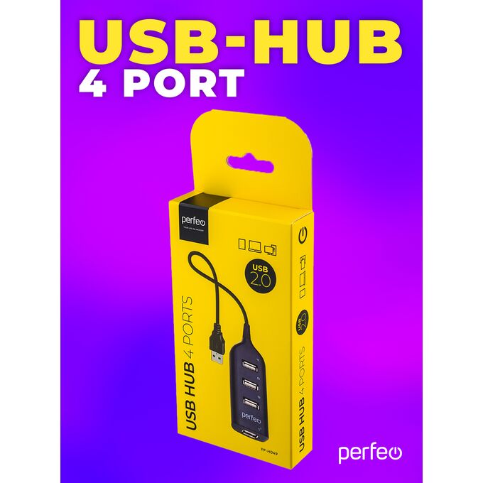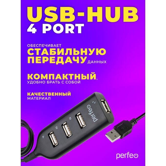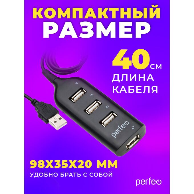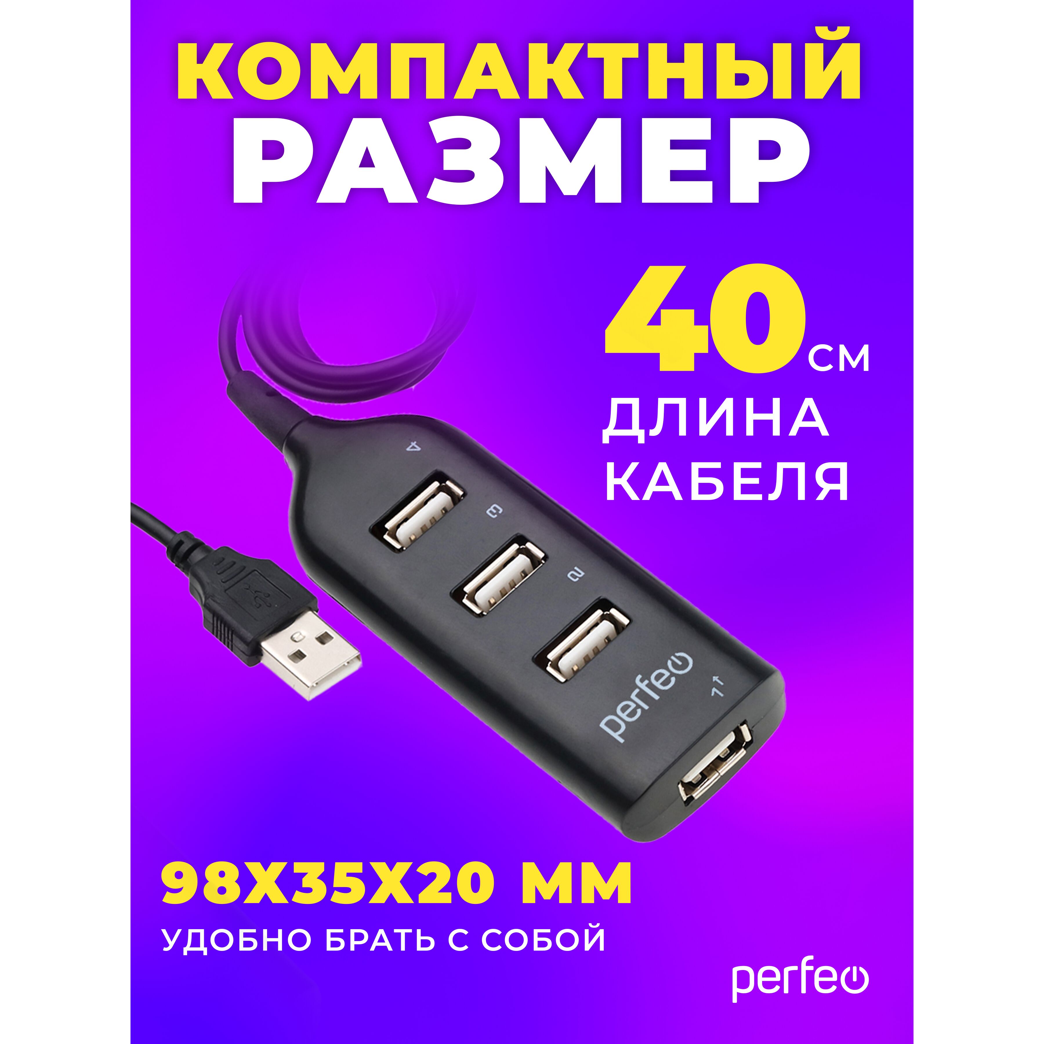 ЮСБ-хаб Perfeo 4 Port, (PF-H049 Black) чёрный
