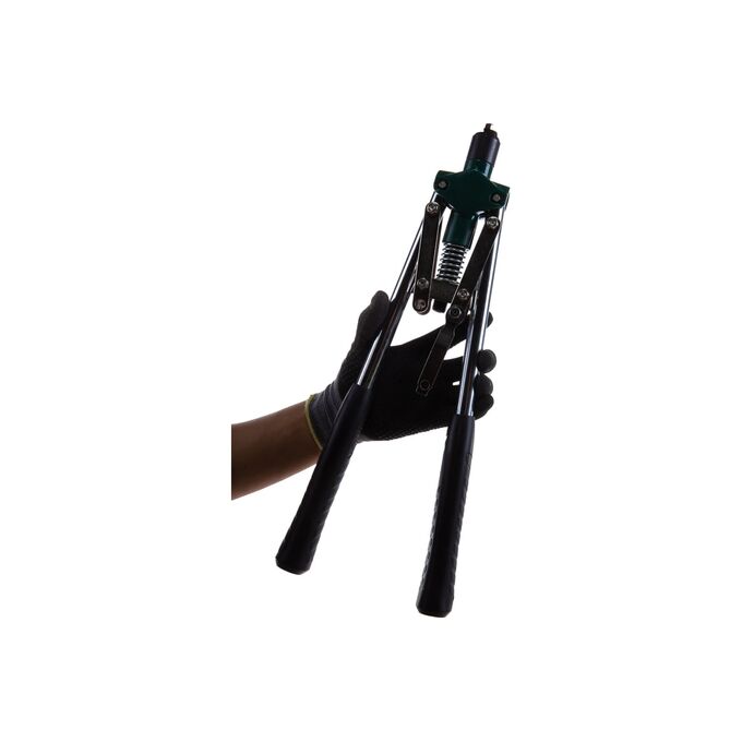Промышленный заклепочник Hans 1972 - это прочный и надежный ручной инструмент, с помощью которого удобно скреплять листовые материалы. Изделие работает совместно с вытяжными заклепками размерами 3.2, 4.0, 4.8, 6.4 мм. Заклепочник рычажного типа снижает усилие при проведении работ. Инструмент обладает двумя удобными рукоятками.