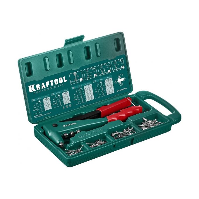 Заклепочник KRAFTOOL X-3 (31170-H6 z01) 2.4-4.8 мм - алюминий и сталь; d-2.4-4.0 - нерж сталь, в кейсе, с набором заклепок