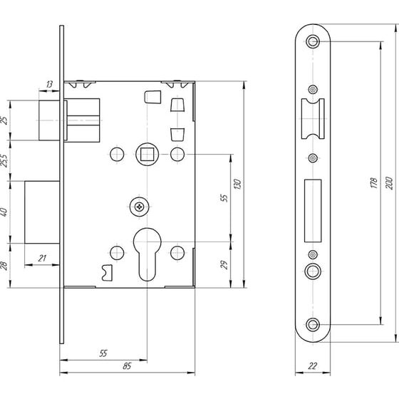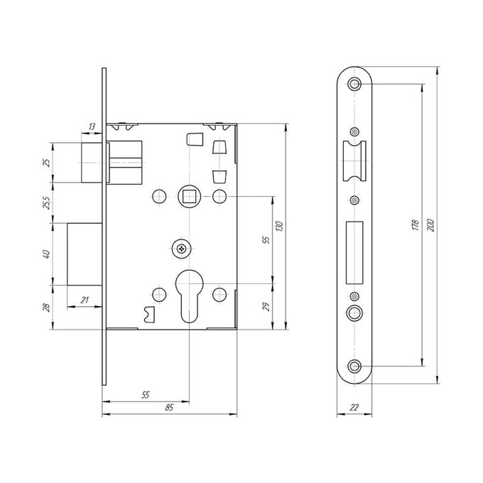 Замок врезной ПТИМАШ ЗВ4 корпус б/ц Б1385