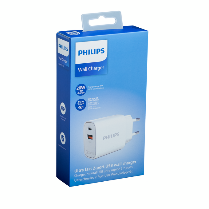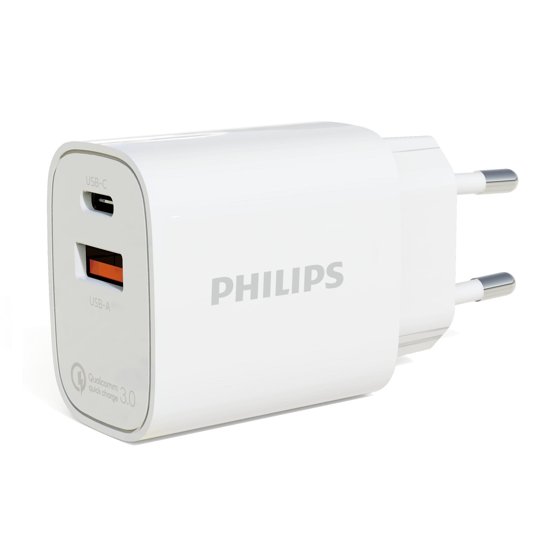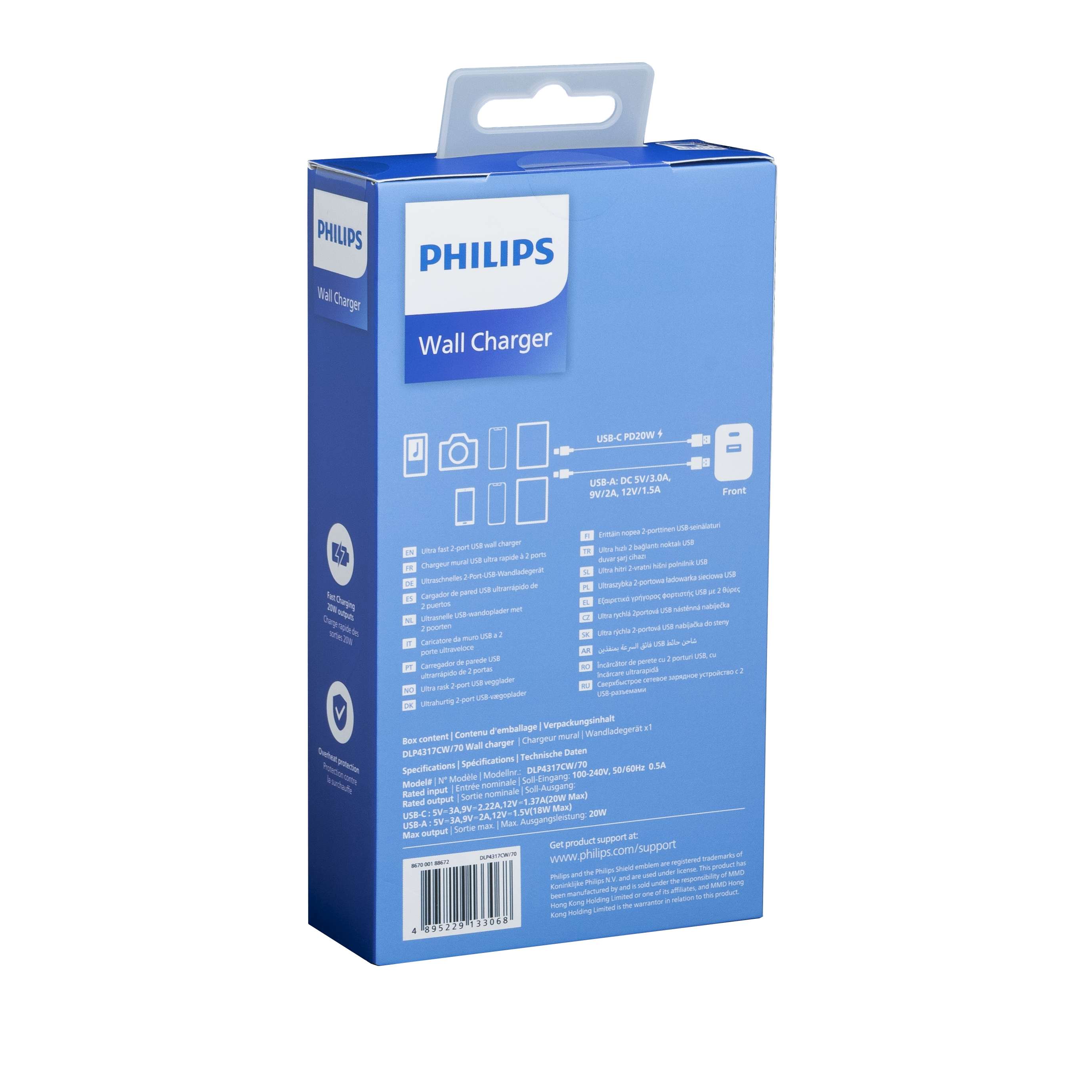 Зарядное устройство для телефона Philips DLP4317CW/70, USB-C и USB-A, 20W, быстрая зарядка QC3.0, белый
