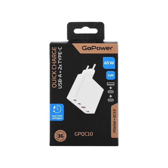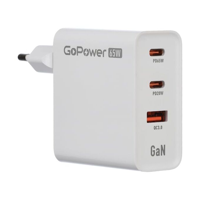 Зарядное устройство GOPOWER 00-00028405 1USB+2TYPE-C 65W QC3.0 GAN White