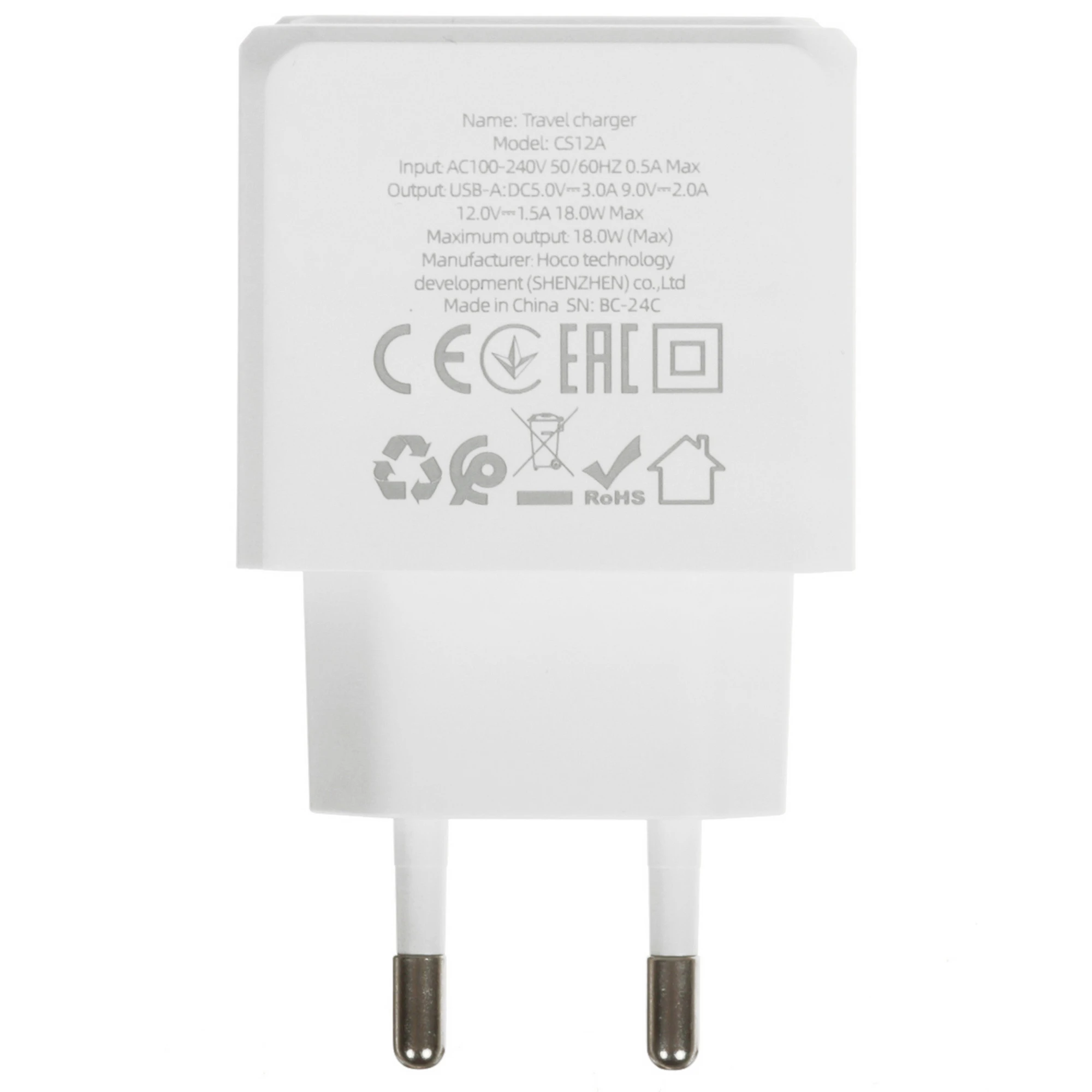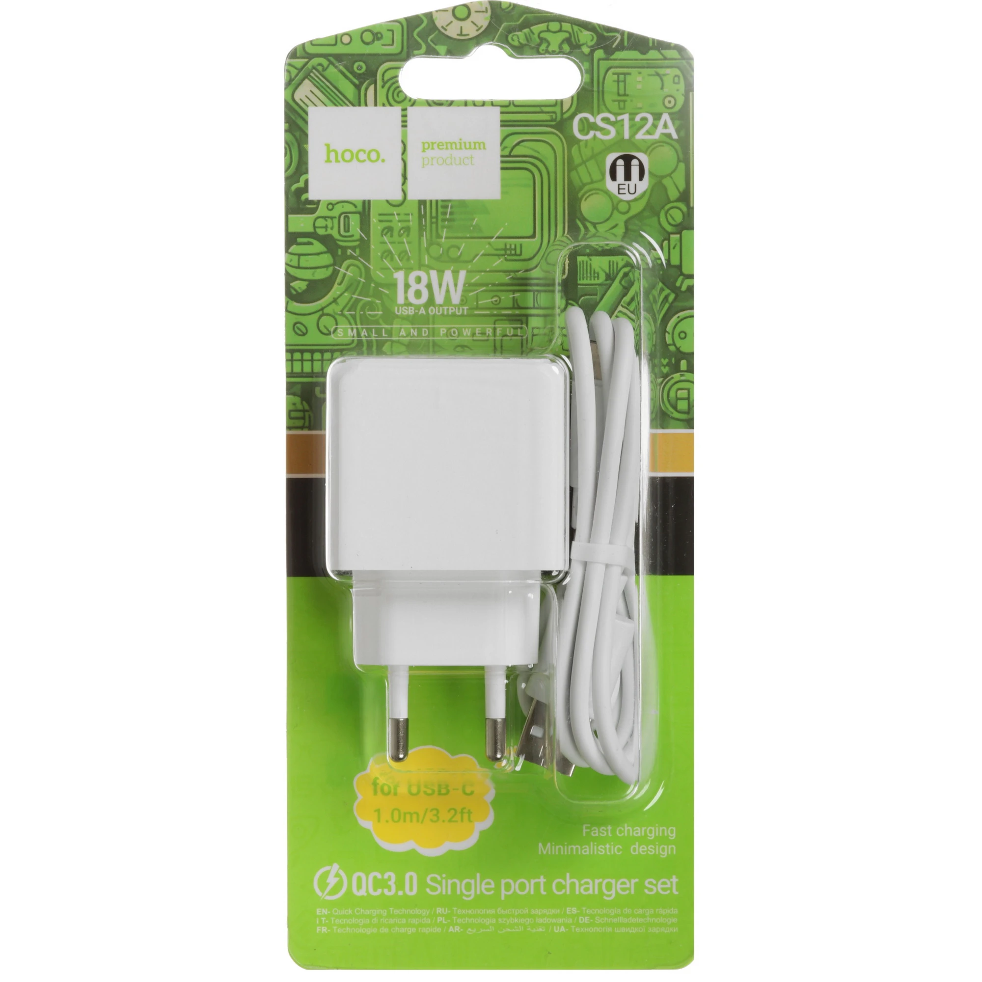 Зарядное устройство HOCO CS12A Ocean 1USB 18Вт, QC, FCP, AFC, кабель Type-C белый