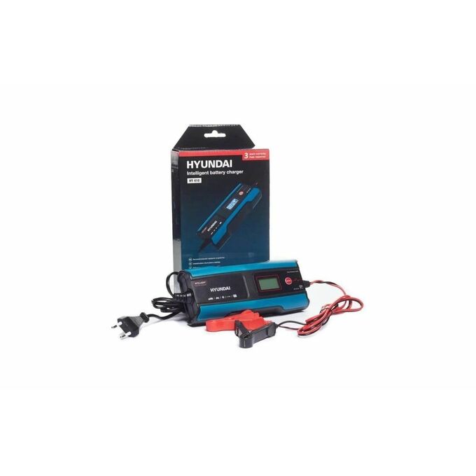 Зарядное устройство Hyundai HY 410 предназначено для автоматического заряда аккумуляторов на автомобилях, мотоциклах, катерах. Прибор имеет пять режимов работы, информация о которых выводится на цифровой дисплей. На корпусе предусмотрены специальные ушки, которые позволяют повесить устройство на крючок в любом удобном месте. После включения в сеть требуется нажать кнопку Старт.