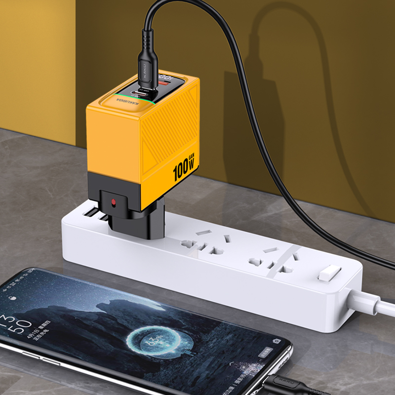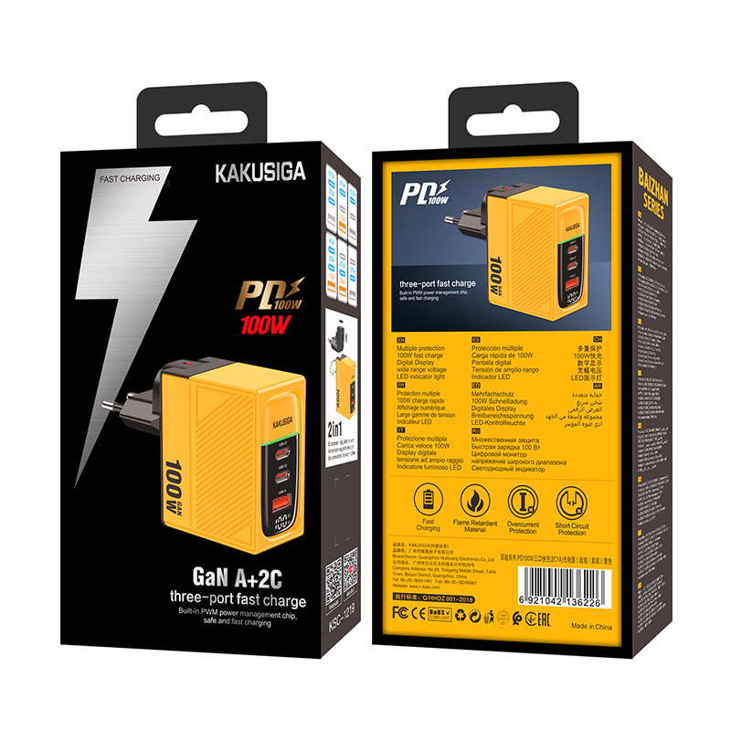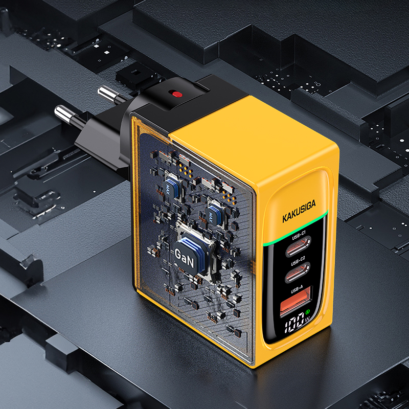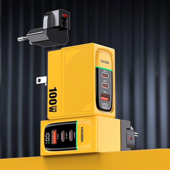 Зарядное устройство KAKUSIGA KSC-1219 PD100W GaN 2 USB-C + 1 USB Yellow
