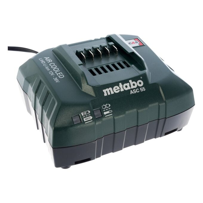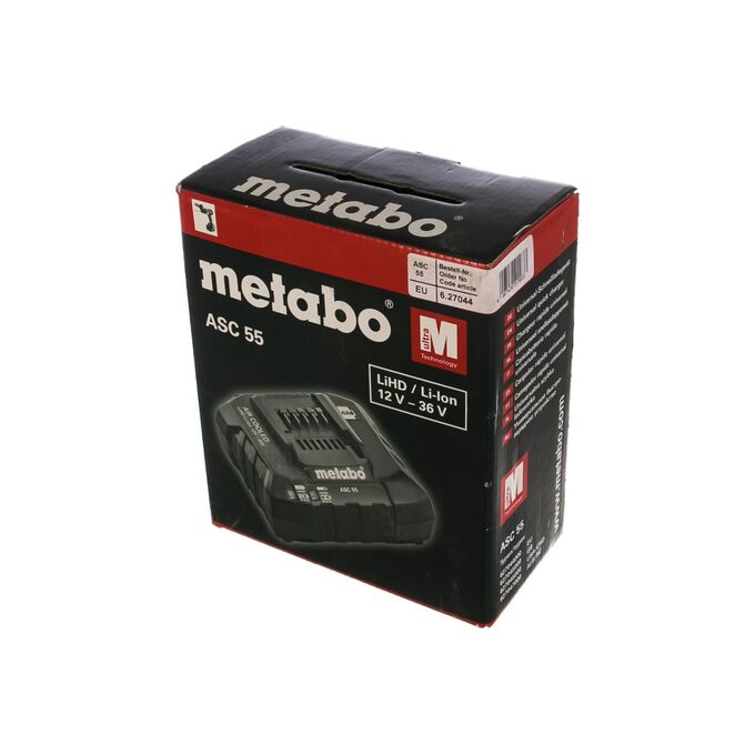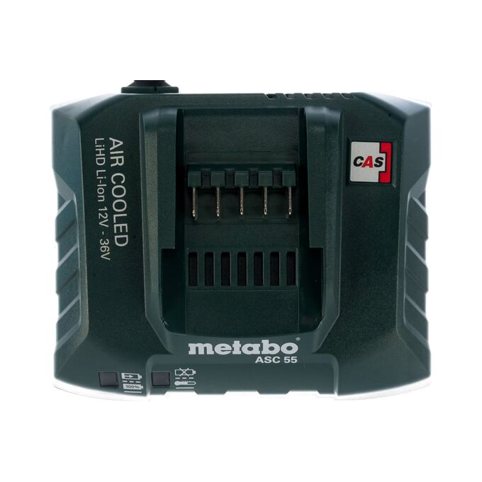 Устройство зарядное ASC 55, 12-36 В «AIR COOLED» Metabo 627044000 подходит для зарядки всех слайдерных аккумуляторных блоков Li-Ion и LiHD (12–36 В) с согласованным током зарядки аккумулятора.
