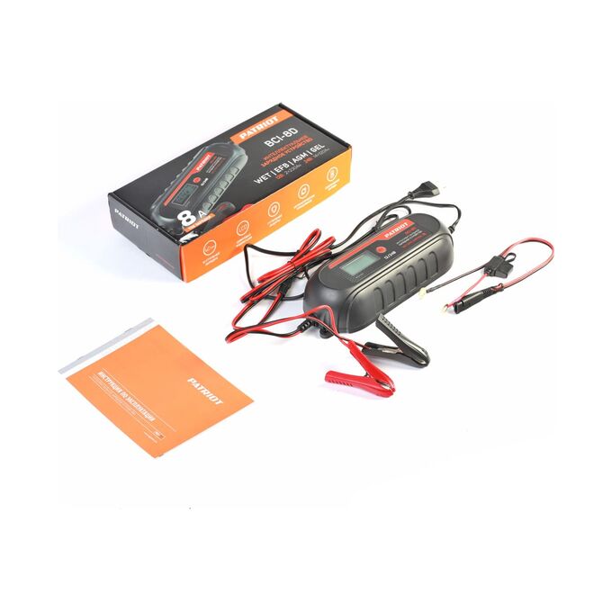 Зарядное устройство Patriot BCI-8D 1165 650302208 - автомобильное зарядное устройство, которое подходит для зарядки и подзарядки свинцово-кислотных аккумуляторов номинальным напряжением 12В или 24В с жидким электролитом (WET), необслуживаемых аккумуляторов (MF, EFM), клапанных, абсорбирующих стекловолоконных (AGM) и большинства гелиевых (GEL)АКБ.