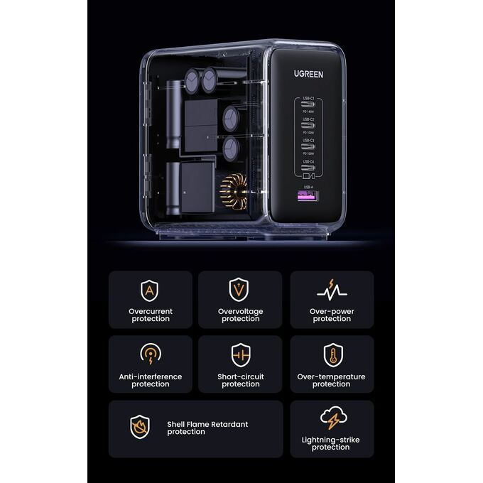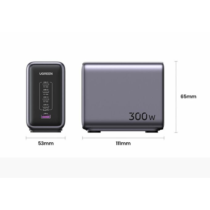 Зарядное устройство Ugreen CD333 (90903B) Nexode 300W 5-Port PD GaN Fast Charger EU Gray