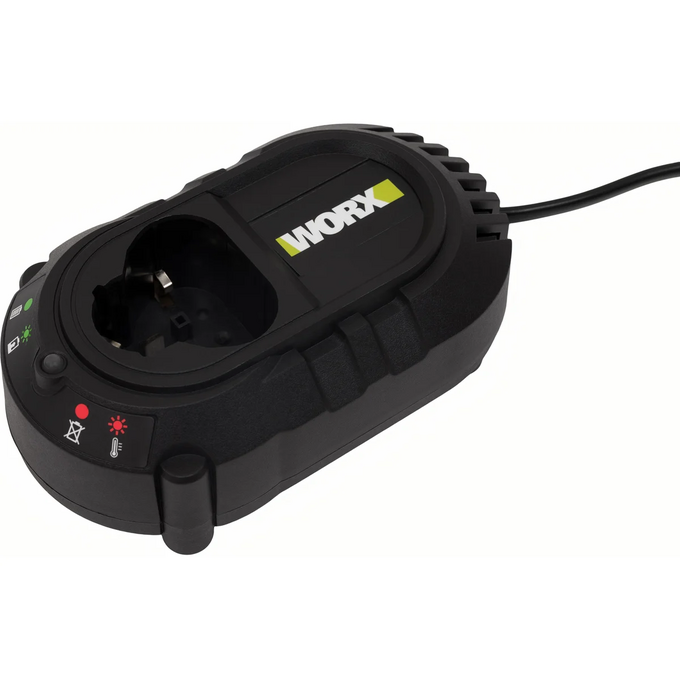 Зарядное устройство WORX Professional WA3713 представляет собой надежное решение для эффективной зарядки аккумуляторов. Оно предназначено для работы с 12-вольтовыми Li-ion аккумуляторами, обеспечивая полную зарядку за 80 минут для аккумулятора емкостью 2 Ач.