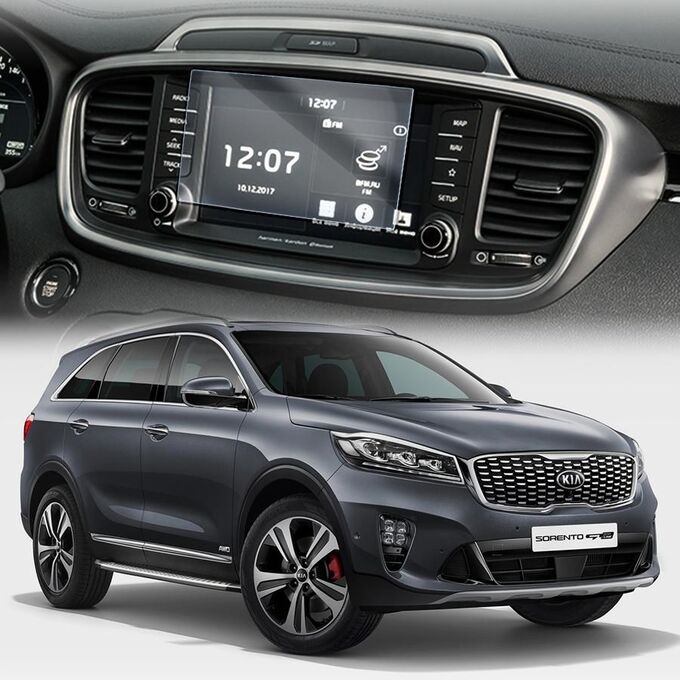 Защитное гибридное стекло Krutoff для экрана мультимедии KIA Sorento 3 Prime рестайлинг (8 дюймов) 2017 - 2020