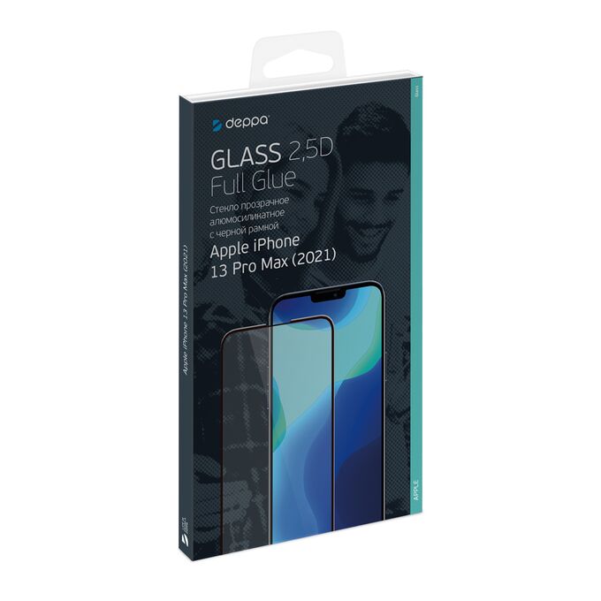 Защитное стекло 2,5D Full Glue для Apple iPhone 13 Pro Max (2021), 0.3 мм, черная рамка 1, Deppa, 62788