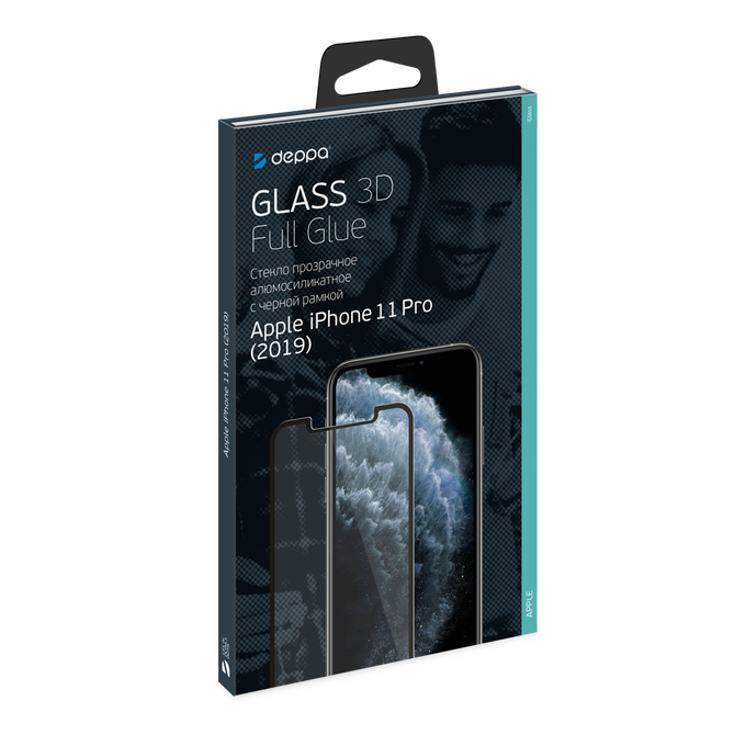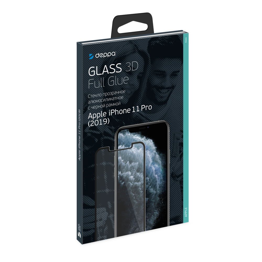 Защитное стекло 3D Full Glue для Apple iPhone 11 Pro (2019), 0.3 мм, черная рамка, Deppa, 62585