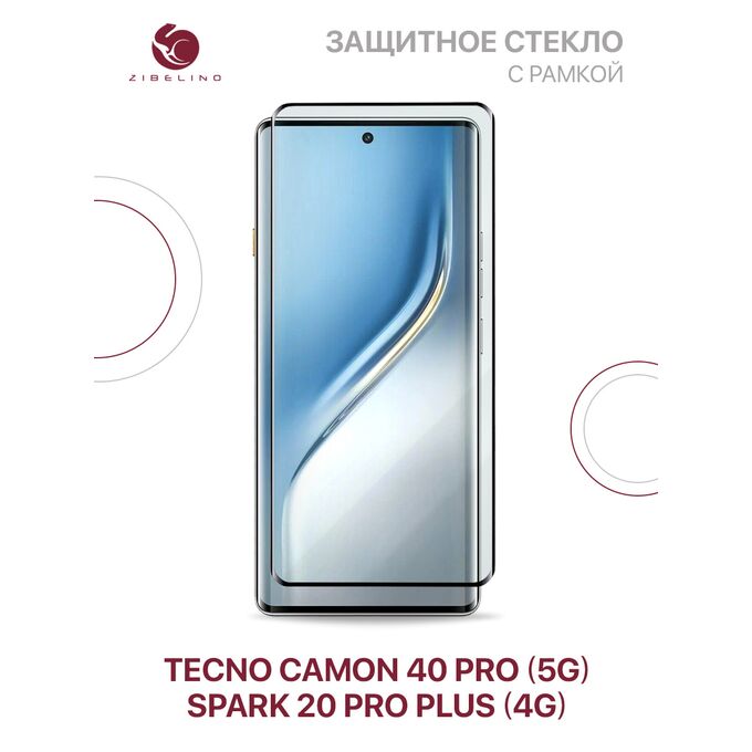 Защитное стекло для Tecno Camon 40 Pro (5G), Spark 20 Pro Plus (4G) с рамкой, с закругленными краями (Текно Камон 40 Про Спарк 20 Про Плюс)