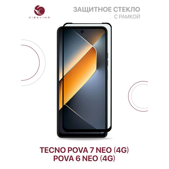 Защитное стекло для Tecno Pova 7 Neo 4G, Pova 6 Neo 4G с рамкой (Техно Пова 7 Нео, Пова 6 Нео)