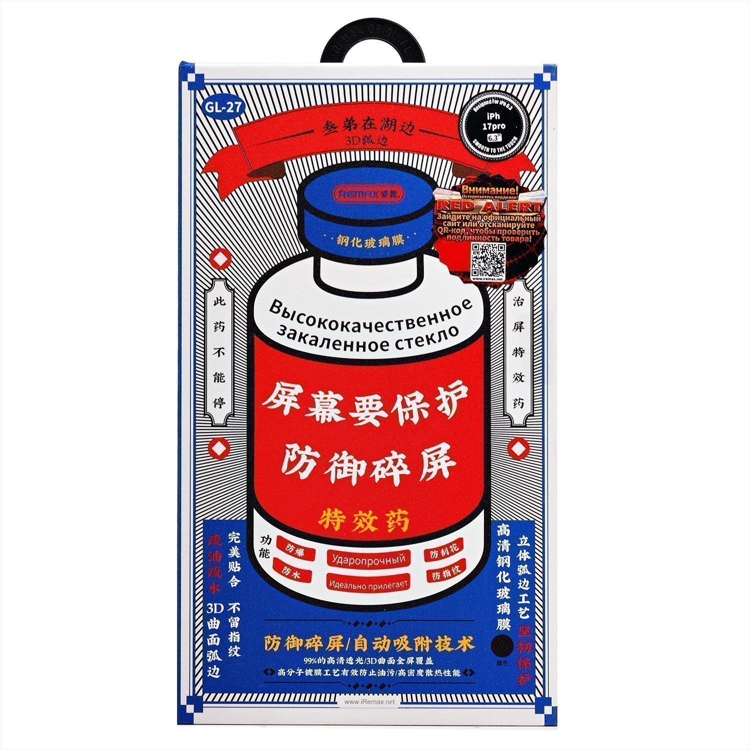 Защитное стекло Full Screen Remax Medicine Glass GL-27 для "Apple iPhone 17 Pro" (black) (241836)