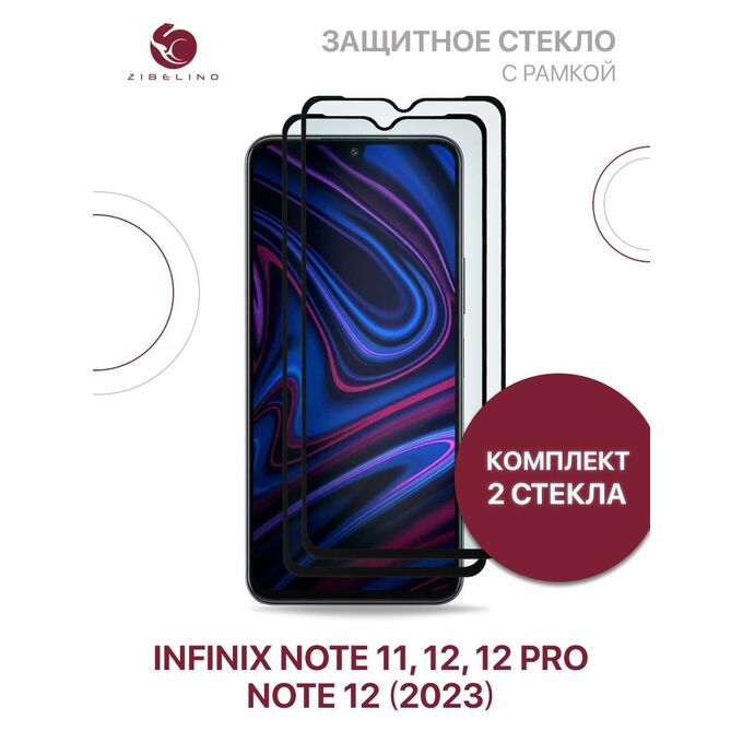 Защитное стекло (Комплект 2 шт) для Infinix Note 11, 12, 12 Pro, Infinix Note 12 2023 с рамкой, Инфиникс Нот 11 12 Про Нот 12 2023