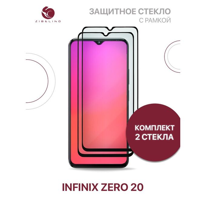 Защитное стекло (Комплект 2 шт) для Infinix Zero 20 с рамкой, Инфиникс Зеро 20