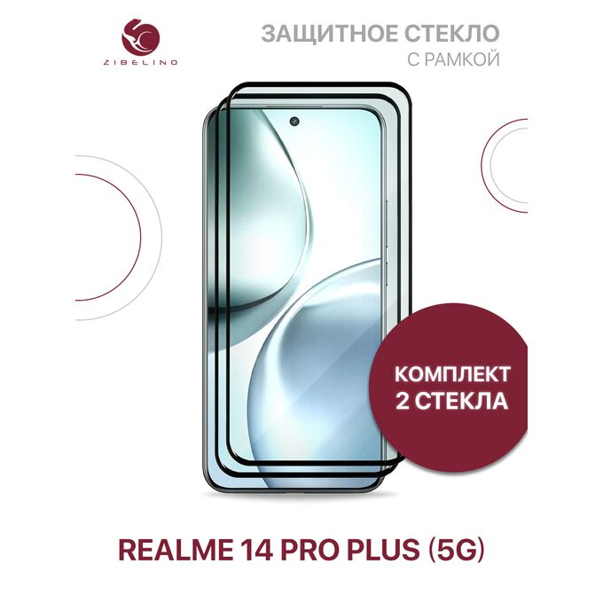Защитное стекло (Комплект 2 шт) для Realme 14 Pro Plus (5G) полноэкранное, с рамкой (Реалми 14 Про Плюс)