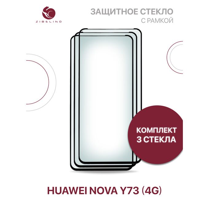 Защитное стекло (Комплект 3 шт) для Huawei Nova Y73 (4G) с рамкой (Хуавей Нова Y73)