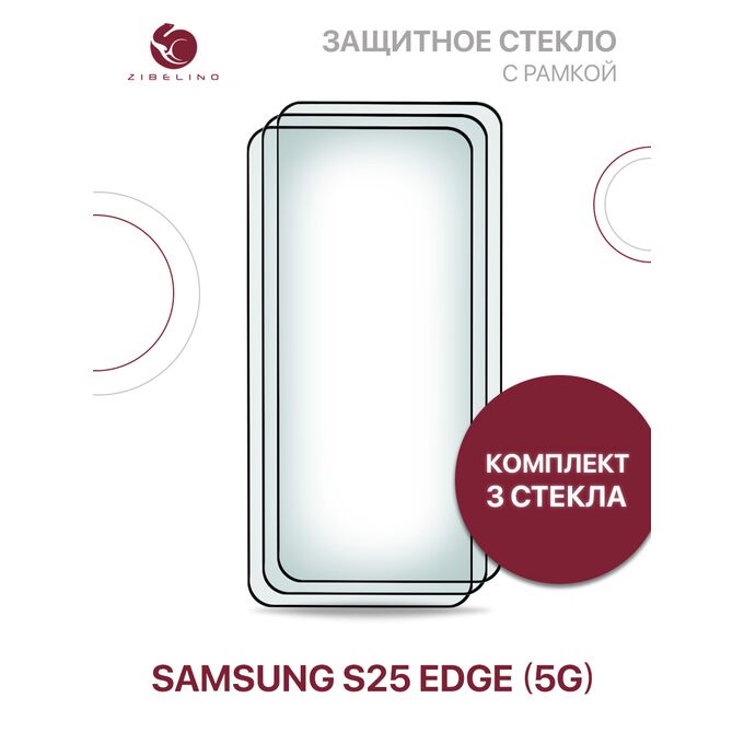 Защитное стекло (Комплект 3 шт) для Samsung S25 Edge (5G) полноэкранное, с рамкой (Самсунг Галакси С25 Эдж)