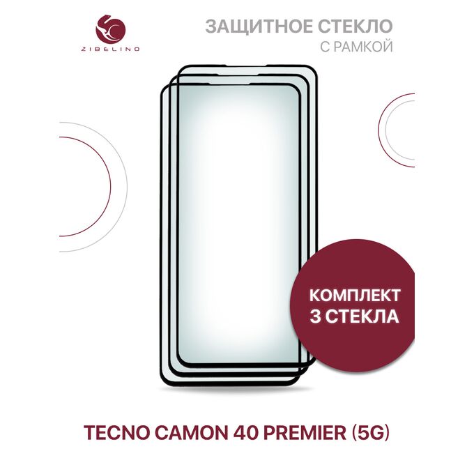 Защитное стекло (Комплект 3 шт) для Tecno Camon 40 Premier (5G) с рамкой (Текно Камон 40 Премьер)
