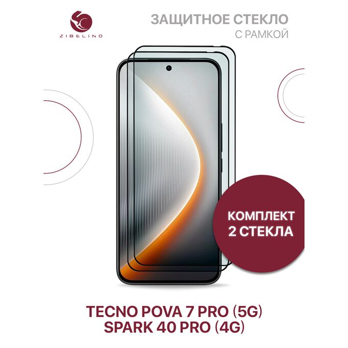 Защитное стекло (Комплект из 2 шт) для Tecno Pova 7 Pro (5G), Spark 40 Pro (4G) с рамкой (Техно Пова 7 Про, Спарк 40 Про)