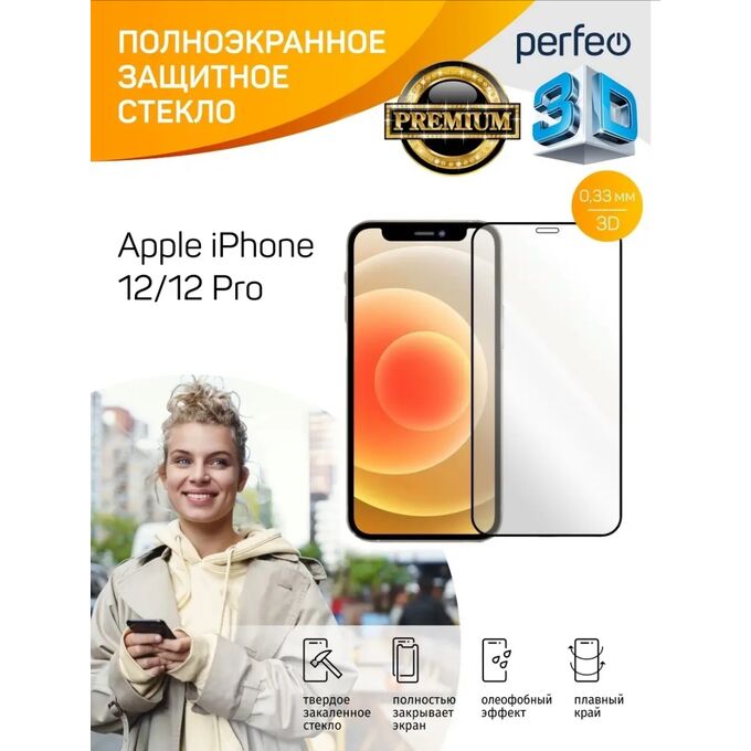 Защитное стекло Perfeo Apple iPhone 12/12 Pro (6.1") черный Full Screen