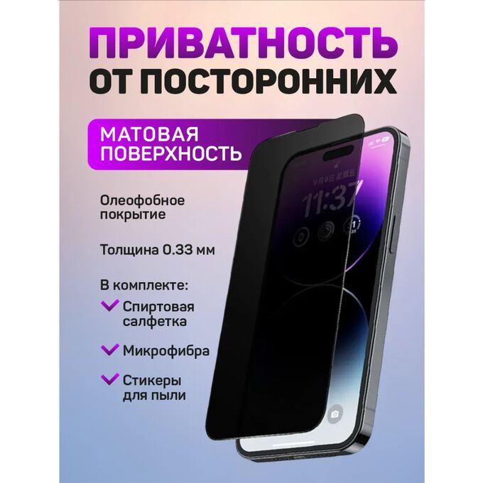 Защитное стекло Perfeo матовое Антишпион без коробки Apple iPhone 16 Pro