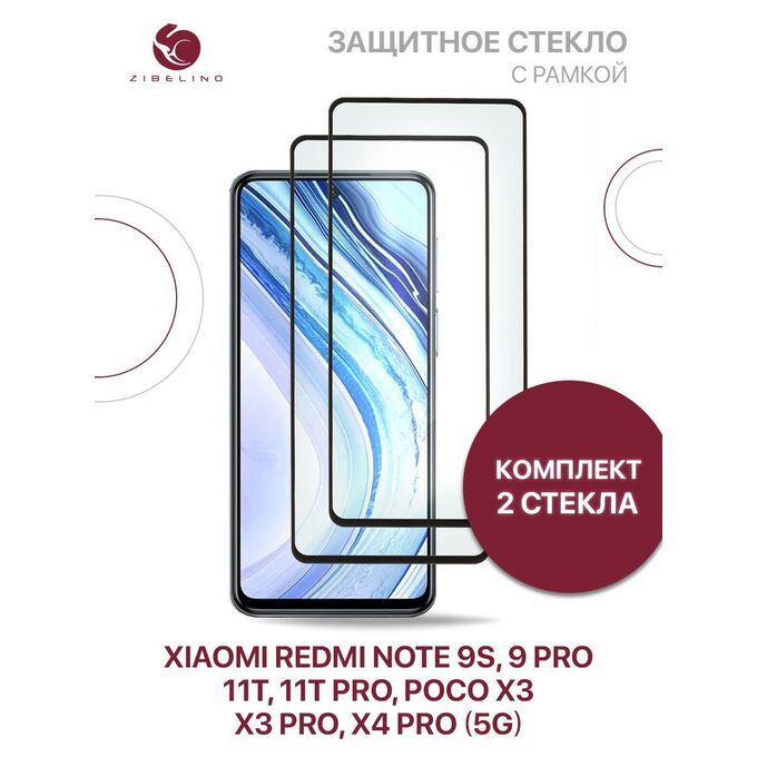 Защитное стекло Premium (Комплект 2 шт) для Xiaomi 11T, 11T Pro, Redmi Note 9S, 9 Pro, Poco X3, X3 Pro, Poco X4 Pro 5G с рамкой, Ксиоми 11Т 11Т Про Редми Нот 9S 9 Про Поко Х3 Х3 Про Х4 Про 5G