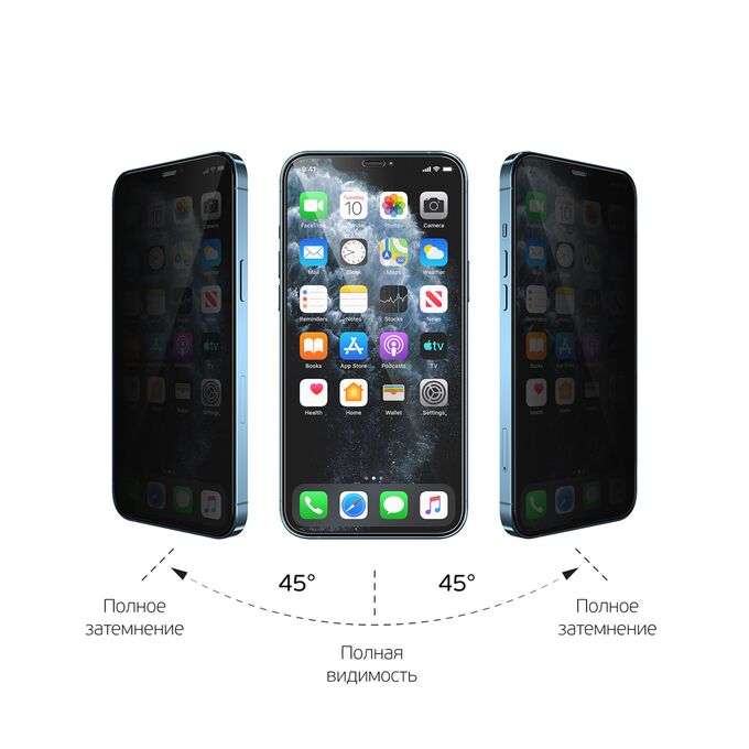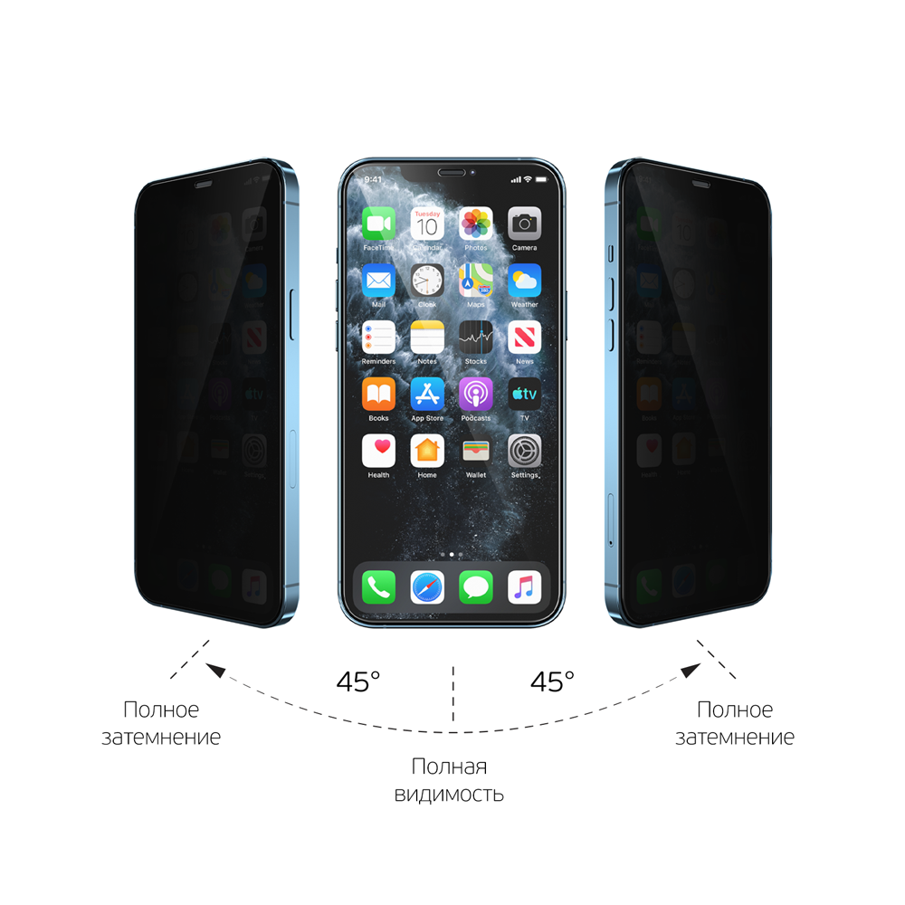 Защитное стекло PRIVACY 2,5D Full Glue для Apple iPhone 12 mini (2020), 0.3 мм, черная рамка, Deppa, 62706
