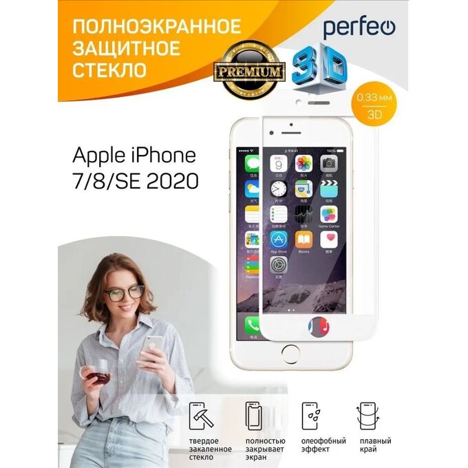 Защитное стекло тех пак Apple iPhone 7/8/SE 2020 белый Full Screen TG_5065