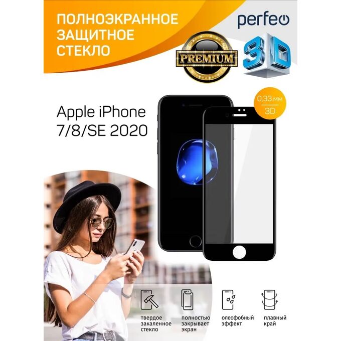 Защитное стекло тех пак Apple iPhone 7/8/SE 2020 черный Full Screen TG_5064