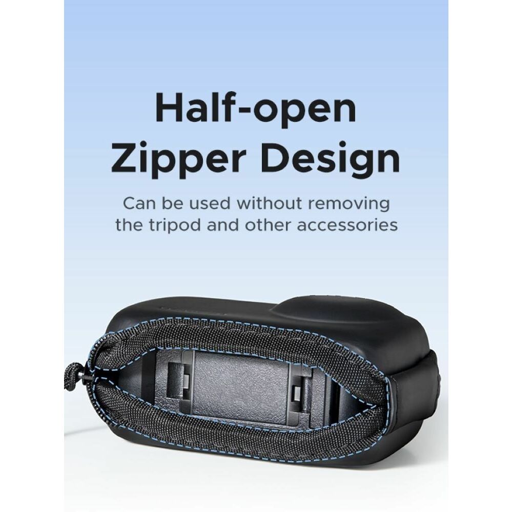 Половинный замок-молния позволяет частично открывать чехол и пользоваться камерой, не извлекая её полностью. Это особенно удобно при работе со штативом или креплением — можно моментально перейти от съёмки к хранению и обратно.