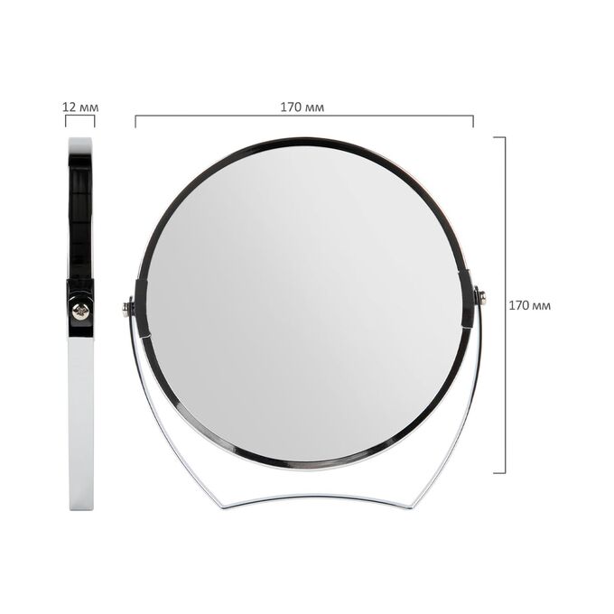 Зеркало настольное BRABIX 607421 круглое, диаметр 17см, двустороннее, с увеличением, рамка из нержавеющей стали