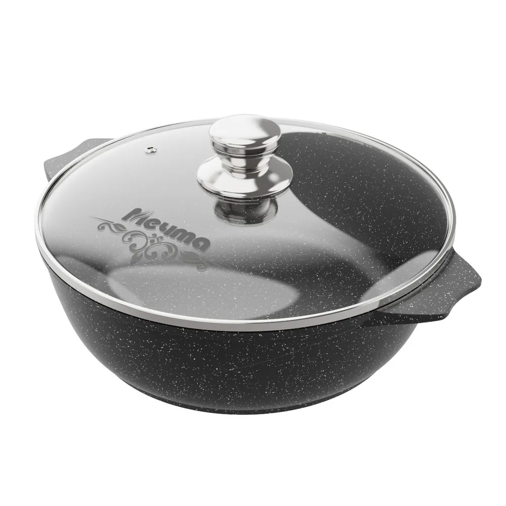 Жаровня 4 литра Гранит Black со стеклянной крышкой - это специальный вид посуды для приготовления мяса, рыбы, птицы и овощей. Но именно в ней, в отличие от сковородок и противней, ваши любимые мясные блюда получатся очень нежными с хрустящей корочкой.
