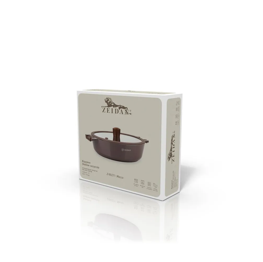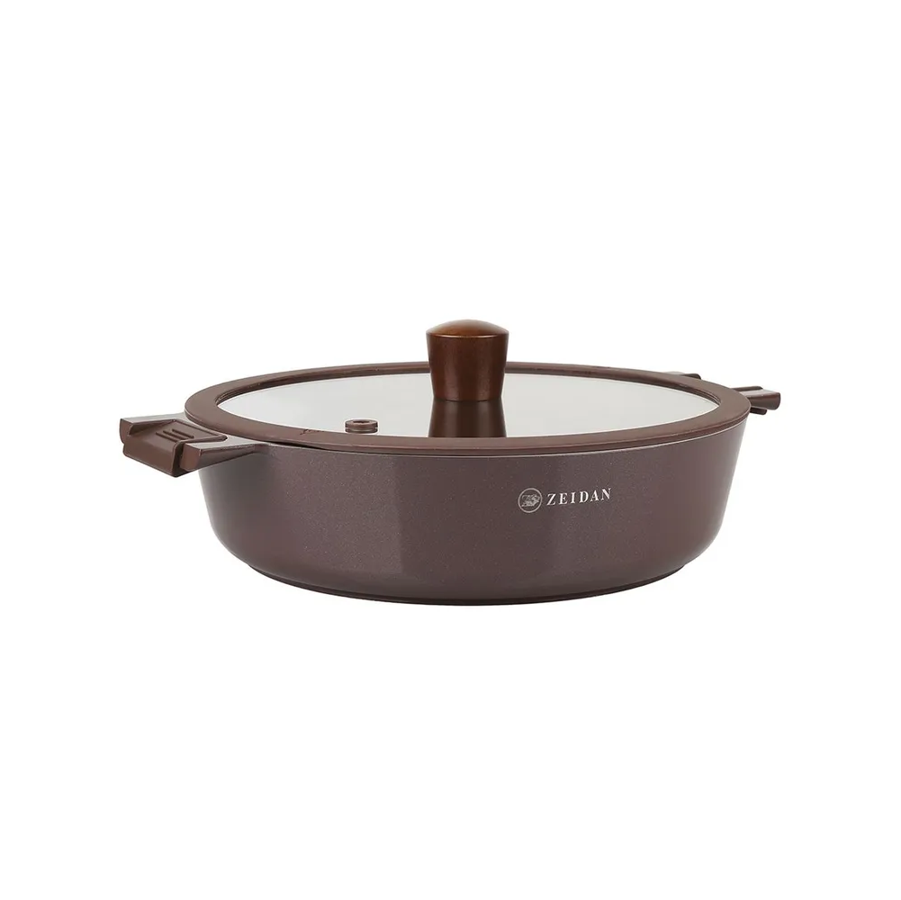 Жаровня ZEIDAN Z-90271 Mocco 4,6л со стеклянной крышкой d28х7,5см литой алюминий