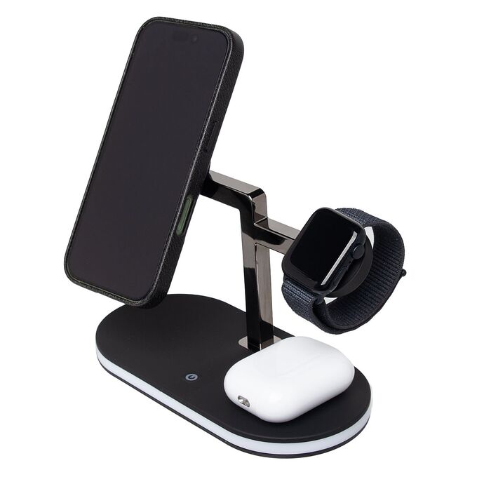 ЗУ Сетевое Беспроводное - 02 MagSafe 3in1 15W с подсветкой (black) (243551)