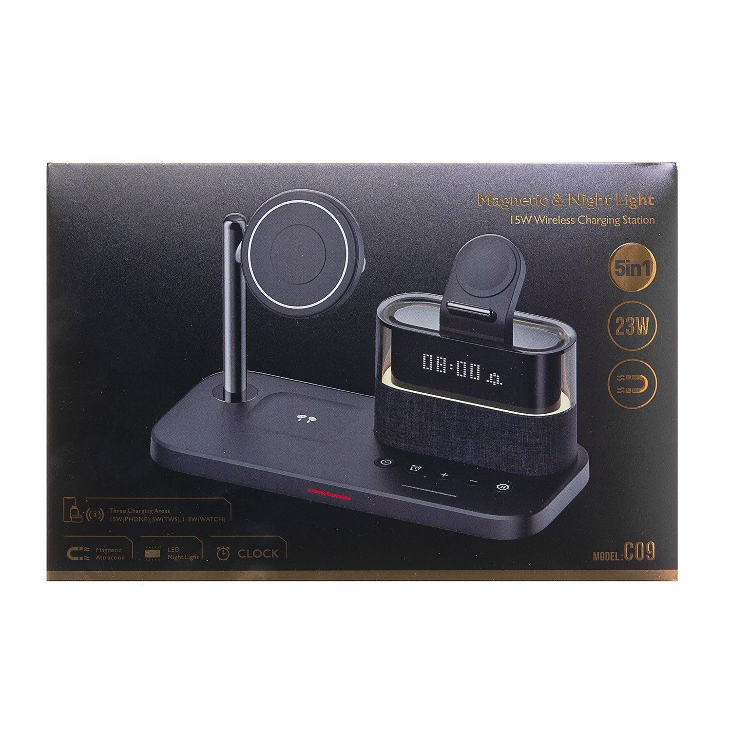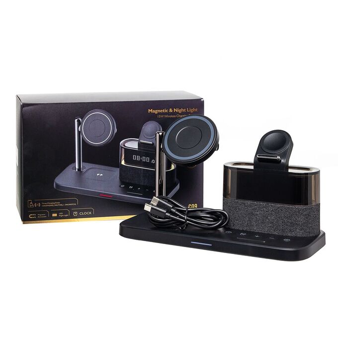ЗУ Сетевое Беспроводное - C09 MagSafe 5-in-1 с часами (black) (243677)